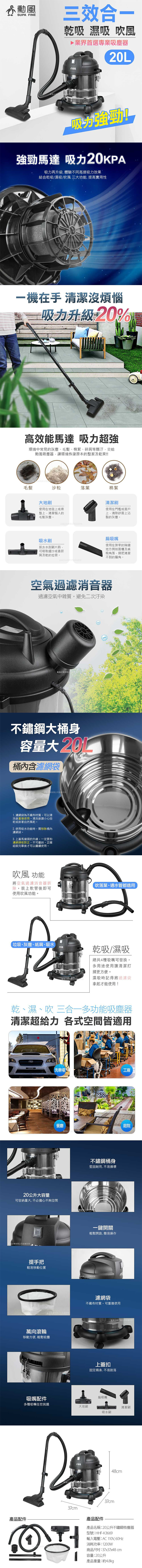 【勳風】乾溼吹三用多功能不繡鋼吸塵器 HHF-K3669 乾濕兩用 吸塵器