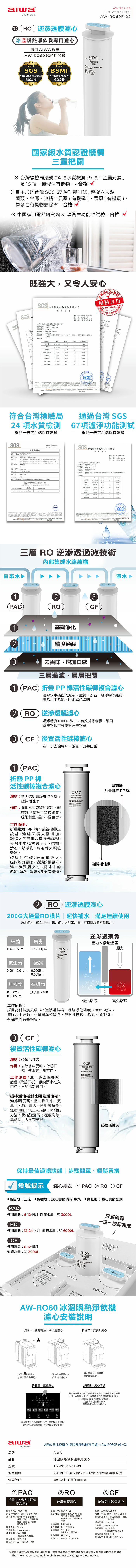 【AIWA 愛華】冰火魔法師RO專用濾心 AW-RO60F-02 適用 AW-RO60 淨飲機