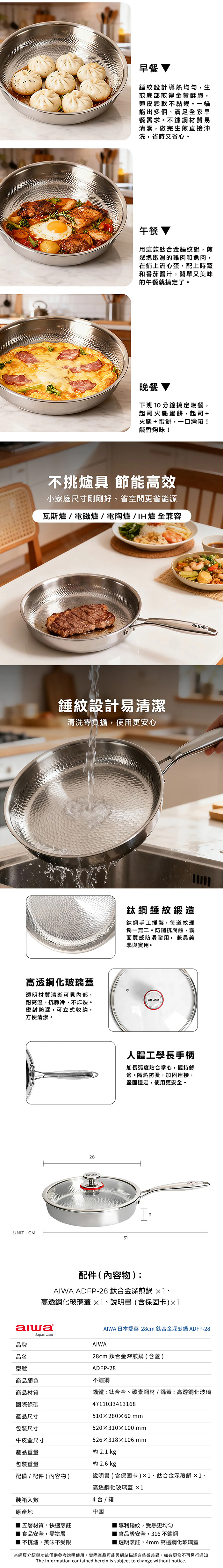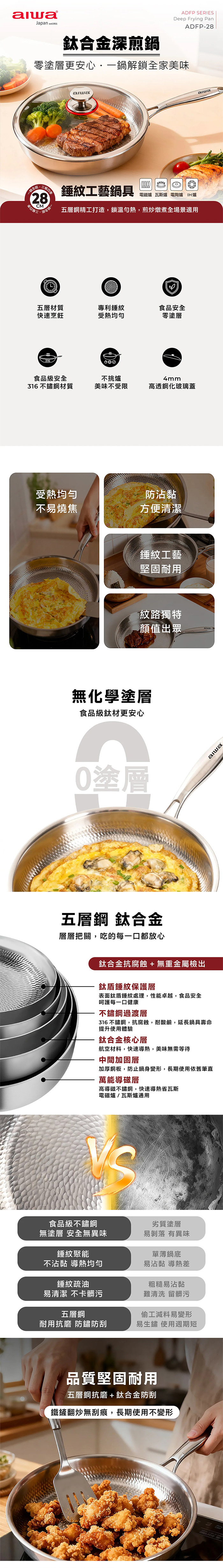 【AIWA 愛華】28cm鈦合金深煎鍋 ADFP-28 含玻璃上蓋 平底鍋 316不鏽鋼 不挑爐 炒鍋-copy
