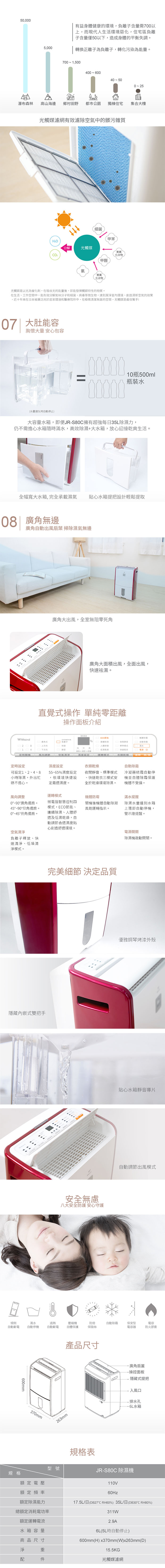 【美寧 Mistral】17.5公升ECO頂級節能除濕機 JR-S80C 全機MIT 負離子空氣清淨 適用22坪