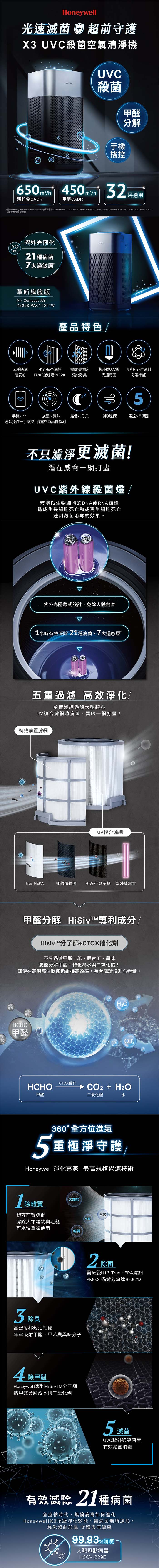 美國 Honeywell X3 UVC殺菌空氣清淨機 X620S-PAC1101TW 原廠公司貨 16-32坪
