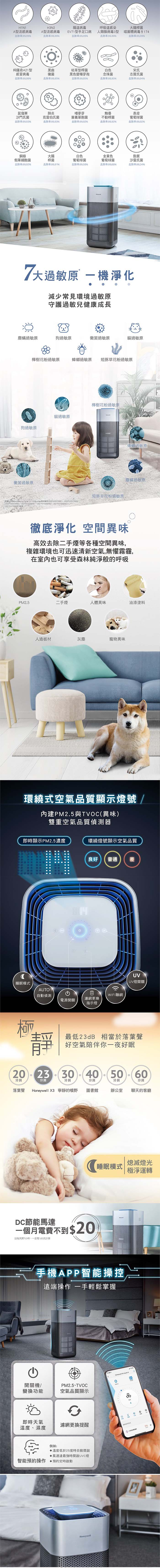 【送一年份濾網組+多功能殺菌消毒機】美國Honeywell 抗敏負離子空氣清淨機HPA-710WTWV1 HPA710WTWV1